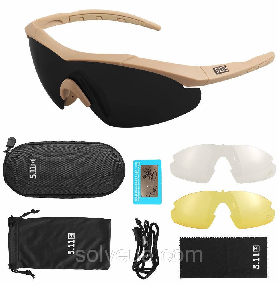 Тактичні Окуляри 5.11 Aileron Shield із 3 лінзами койот оправа з поляризацією.solve